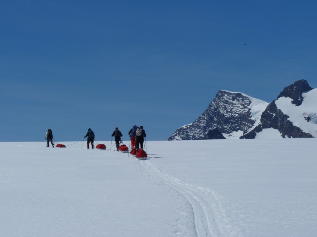You must be in good physical shape to join this activity. We will be on the move for days at a time, pulling supplies behind us over rough ground, including hills, deep snow, crevassed areas, and potentially dangerous alpine terrain.