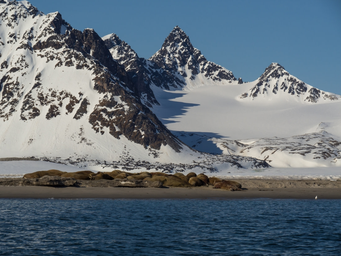 Bell Sund is another highlight of the Around Spitsbergen itinerary, being one of Svalbard's largest fjord systems. A possible landing site here is Ahlstrandhalvøya, at the mouth of Van Keulenfjorden, where beluga skeletons can be seen. Fortunately, belugas were not hunted to extinction, and there’s a small chance of encountering a pod.