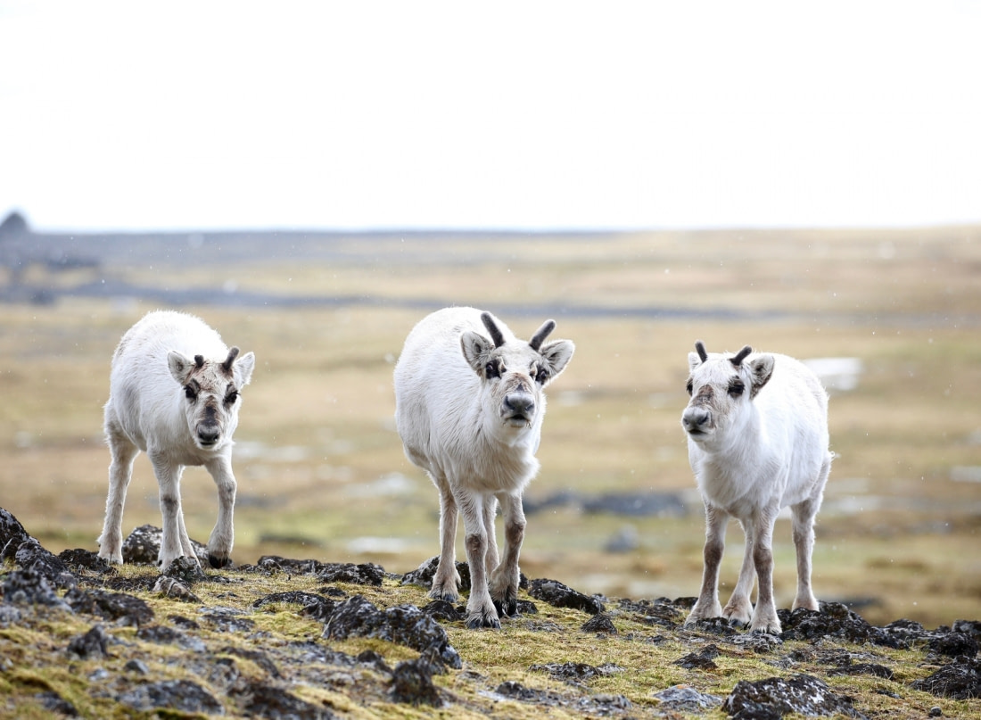 In Svalbard, where we most often see reindeer, you might spot one or more of these deer-like creatures munching plant life on the open tundra. In fact, Svalbard even has its own distinct species of reindeer. But we'll get to that.