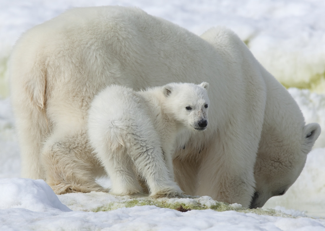 10. Pensive polar bear cub and mother