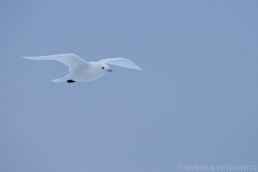 We took countless photos of the feeding, flying, or resting birds. Among them were young ones, identifiable by the black markings on their heads and wings. Still, we held out hope for a polar bear sighting.