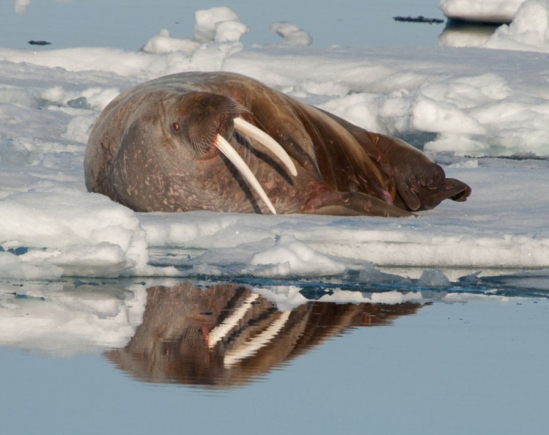 One of the core species of the Arctic, the walrus is found in great abundance around Svalbard. You're likely to see a walrus more than most other Arctic animals, whether lounging in large coastline harems or swimming just off shore.