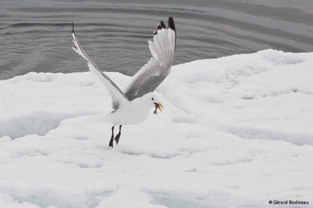 Bird cliffs are a regular feature of Svalbard and its principal island of Spitsbergen. One of the more frequently seen birds there is the kittiwake, a species of gull named for its bird call.