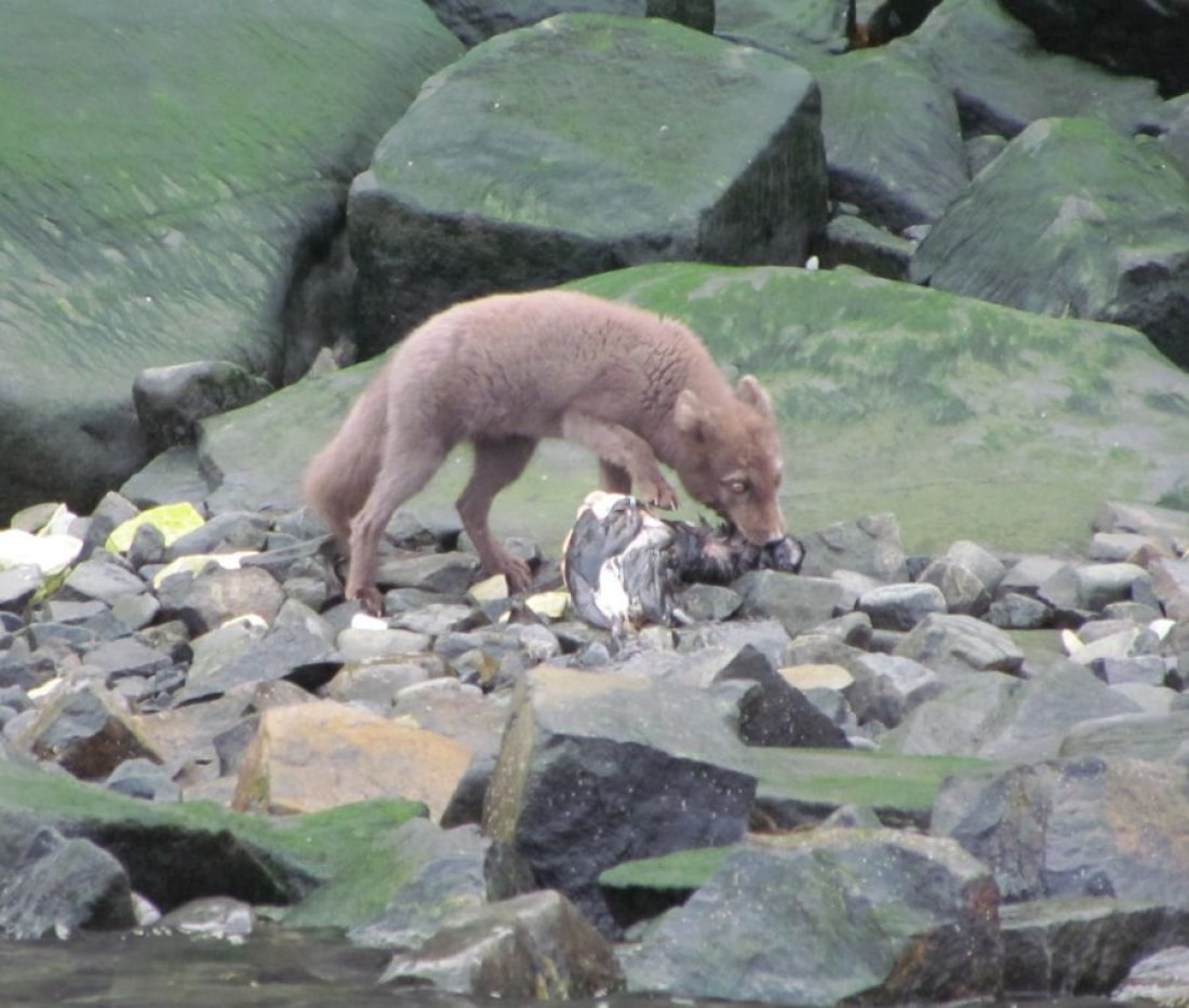 One of the more common and beloved animals in Svalbard is the Arctic fox. Often seen hunting below the area's many bird cliffs, they turn white in the winter, but their warm fur keeps them protected year-round.
