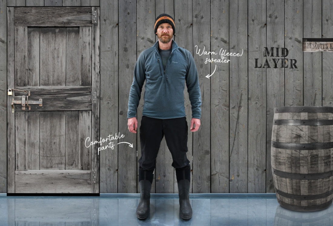 The same goes for your outer pants and gloves. Trousers should fit over muck boots or your own personal footwear, and both pants and gloves should be waterproof and able to be easily removed on hot days or during activities that make you sweat.