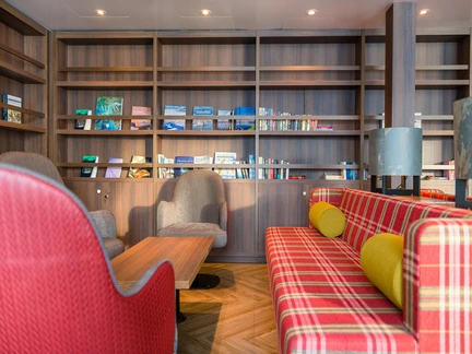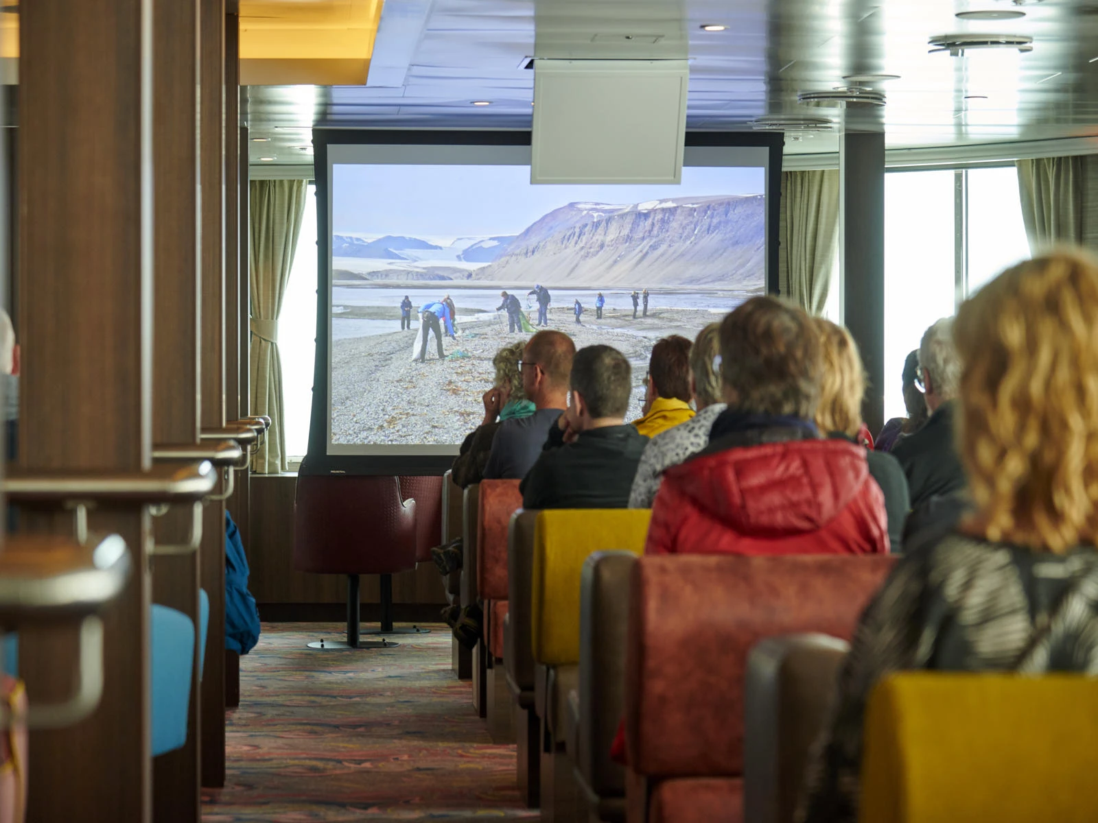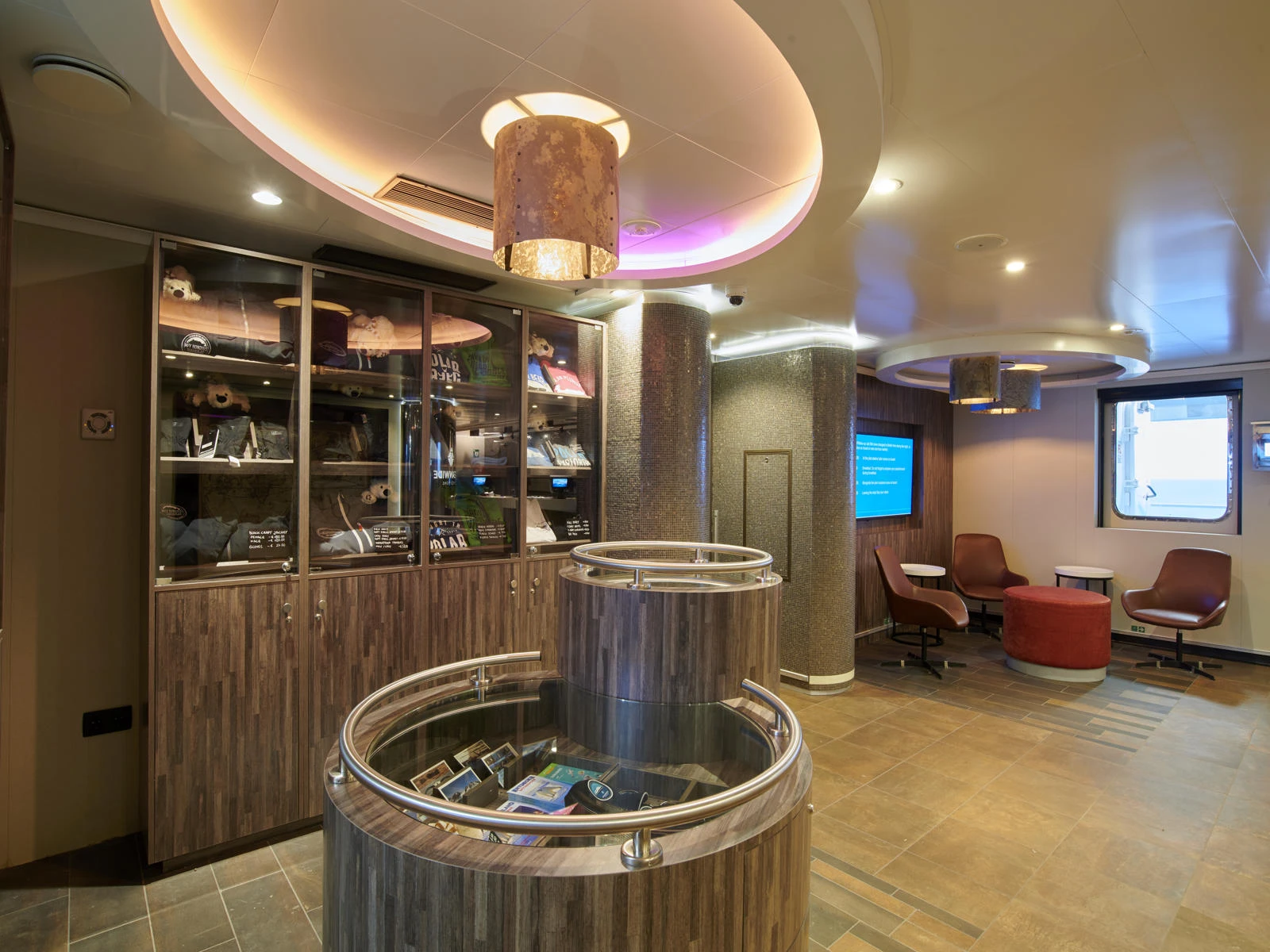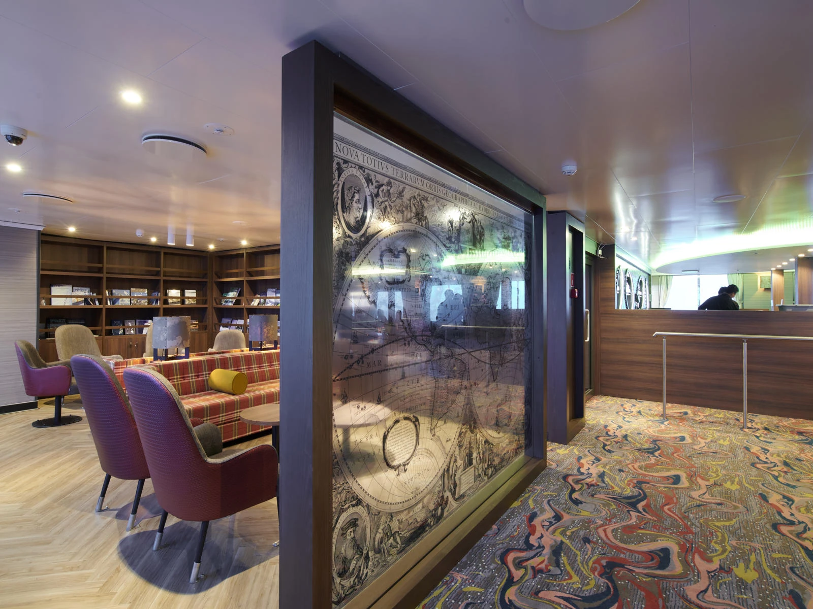 One deck consists of a large observation lounge and a separate lecture room, which are reserved for a wide variety of interactive workshops, exhibitions, and performances particular to Hondius.