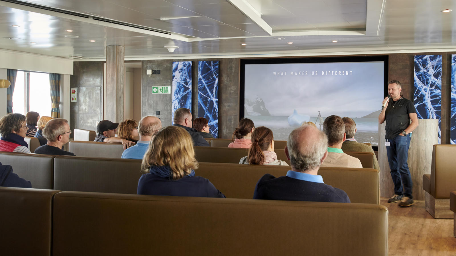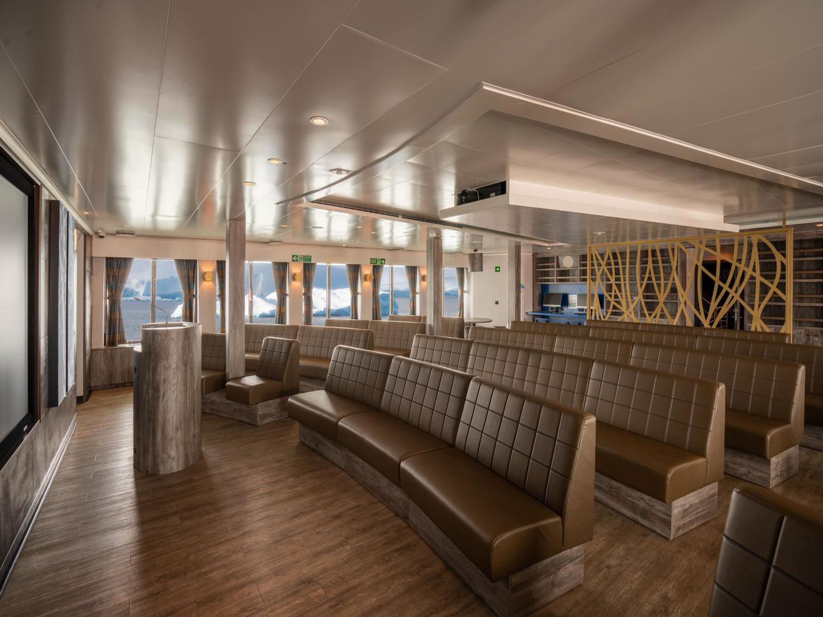 These include a separate lecture room equipped with a large screen, advanced audio systems with music and microphone capabilities, and a private space with stunning views outside. This setup is perfect for hosting intimate meetings, presentations and lectures, all of which can be organized by the sub-charterer to suit the theme and purpose of your journey.