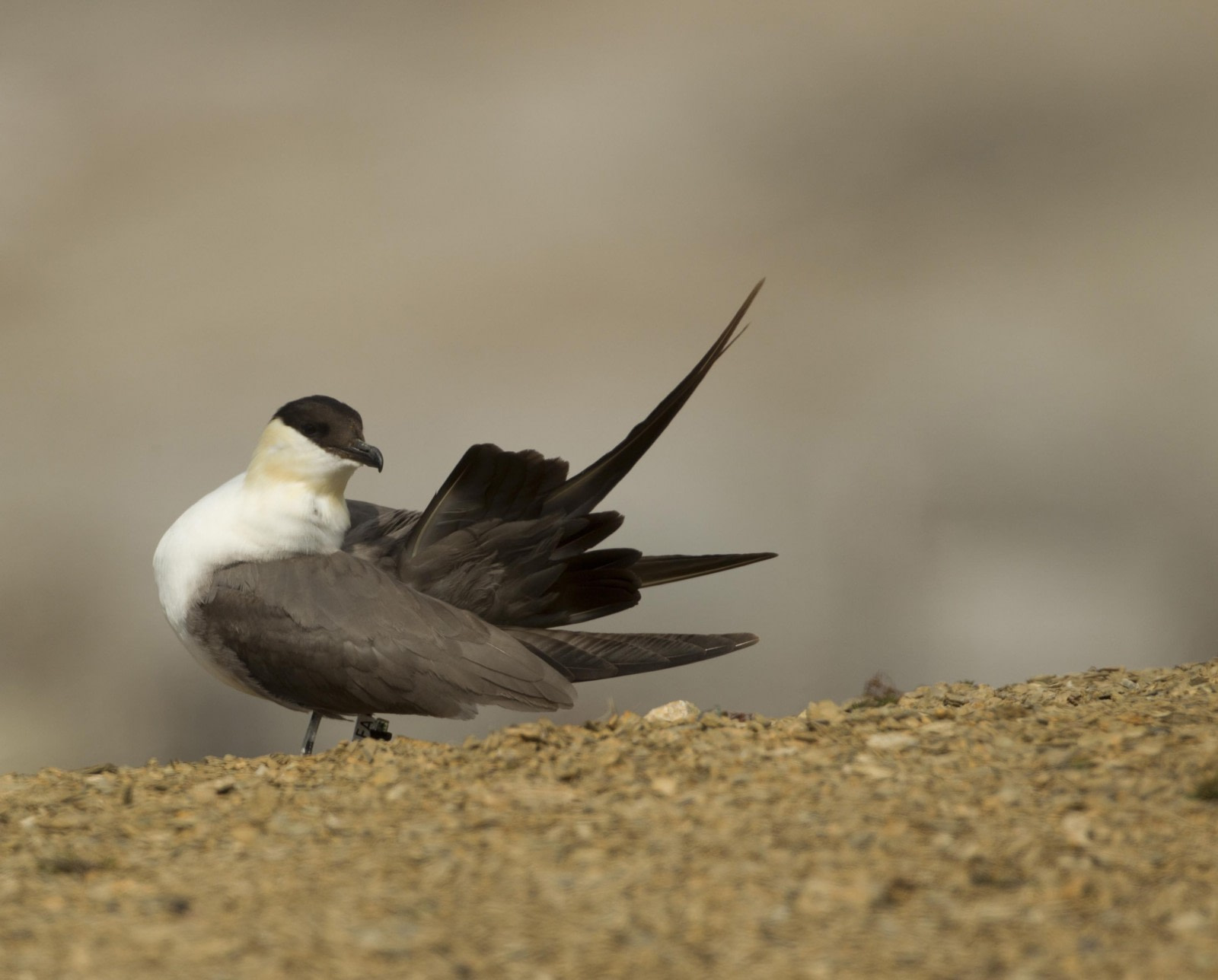 Long-tailed Skuas harass other birds to steal their catch. During breeding season, they hunt rodents by hovering and then swooping down to kill.