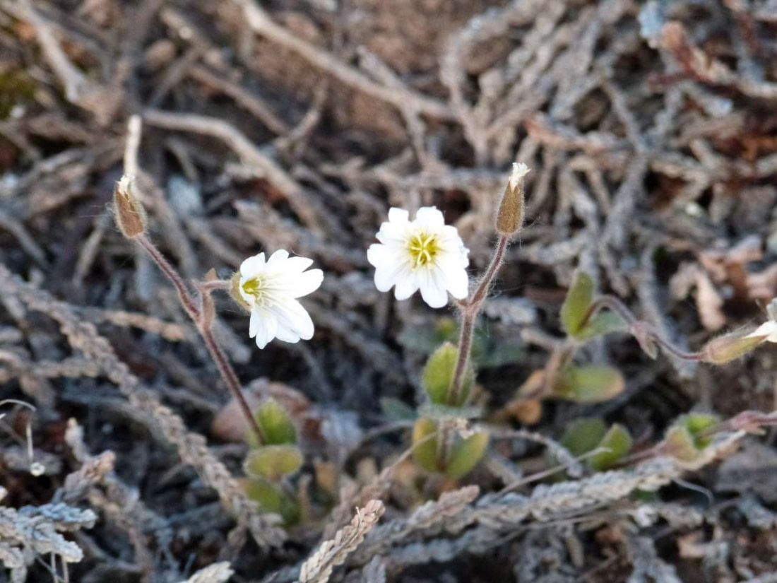 This perennial herb is also known as the Arctic mouse-ear chickweed. It can be found as often in damp spots as gravelly open areas, sometimes growing loose but more often in tufts.