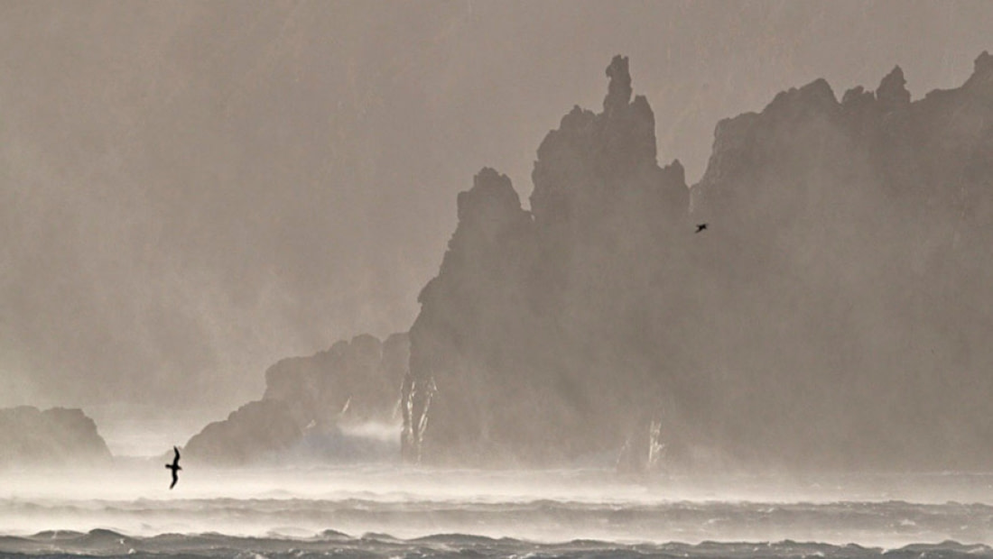 Set in the midst of the Roaring Forties, a Southern Hemisphere area of strong western winds between 40 and 50 degrees latitude, Gough Island is often buffeted by strong westerly gusts as well as powerful sea swells.