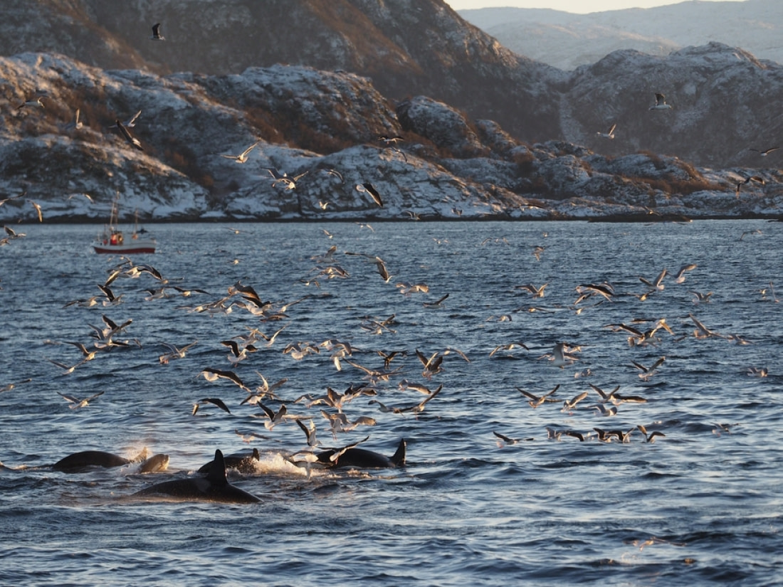 Scientists have studied Icelandic killer whales to determine if they hunt herring more during the day or night. By comparing acoustic data collected using autonomous recorders deployed in Iceland over the winter, researchers found that killer whales feed on herring both day and night, based on the acoustic detection of underwater tail slaps.