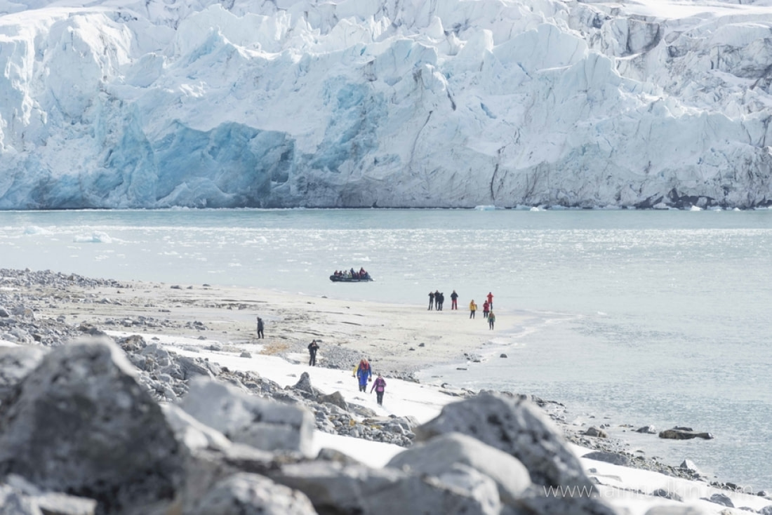 Additional landings are made around southern Spitsbergen and the southeastern islands of Barentsøya and Edgeøya, both of which offer great wildlife and hiking opportunities: a kittiwake colony, walrus haul-out, trapper’s hut, and tundra walk are all possible. You might also sail along the 5-km long (3 miles) Monaco Glacier and Bell Sund, where you might see beluga whales.