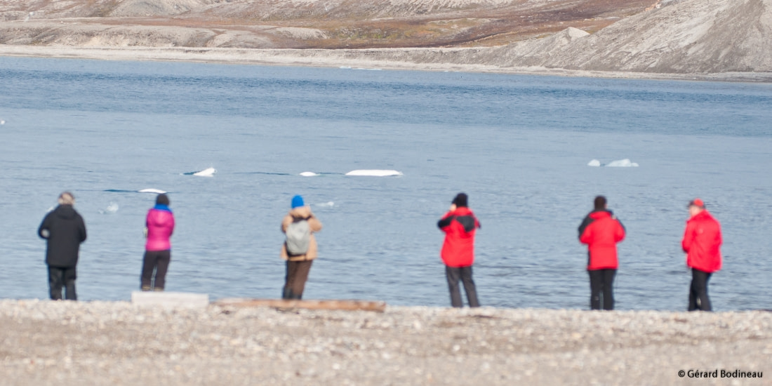 The beluga whales you might spot during the summer on a Svalbard voyage will typically be found in shallow coastal waters around one to three meters deep (3.3 - 9.8 feet), though they appear in deeper offshore waters too.