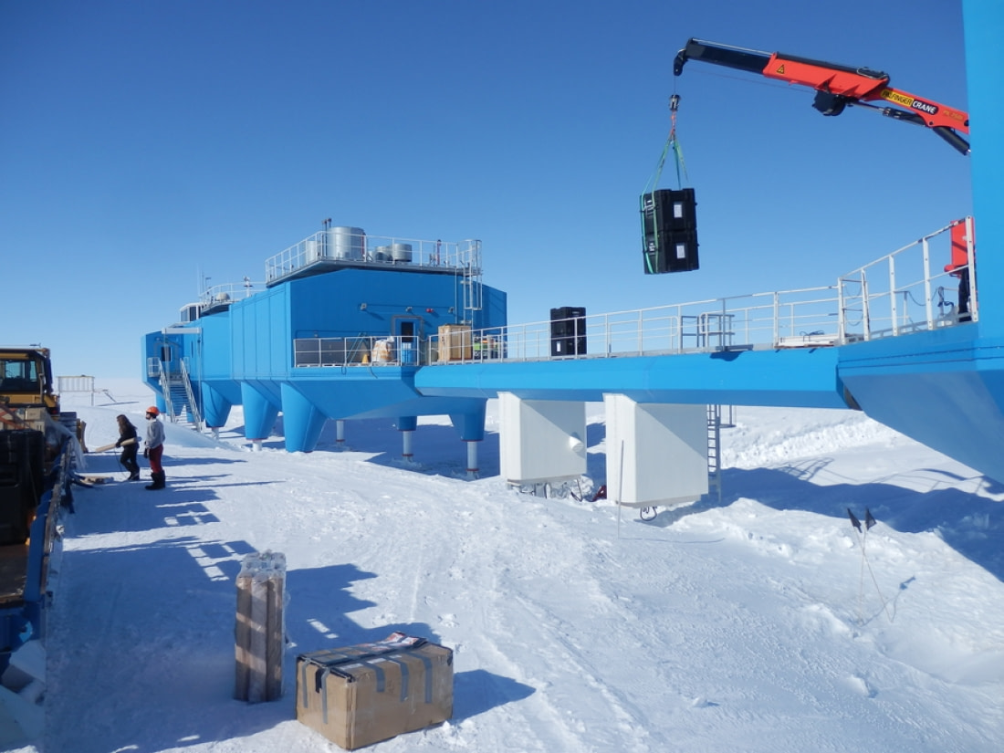 There is 24/7 darkness at the location for 105 days per year, and workers are completely isolated from the outside world due to the surrounding sea ice. The base itself is state-of-the-art, composed of 8 modules that sit atop hydraulic legs equipped with skis. These legs can be raised to overcome snow accumulation, and each module can even be towed separately to a new location.