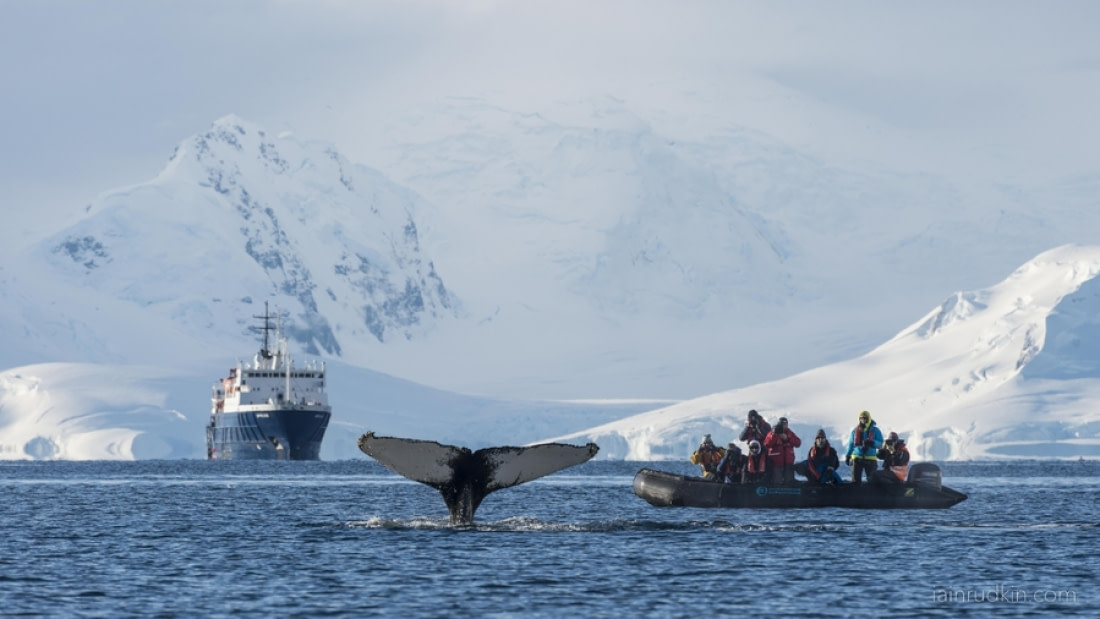 2. Semburan paus di Wilhelmina Bay