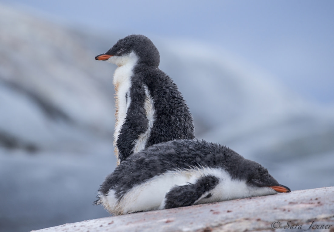 15. Anak penguin gentoo yang kelelahan