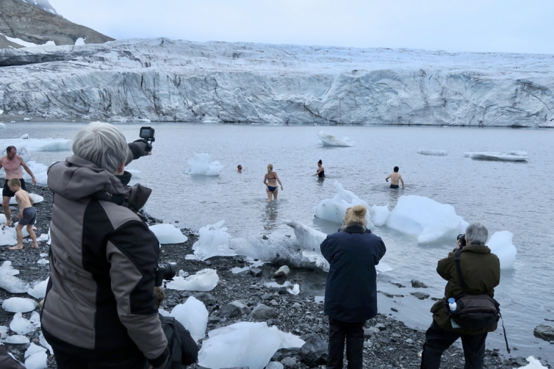 Zodiak selalu menunggu di dekatnya, siap membawa semua orang kembali ke kapal dengan cepat. Ini memberi para pelaku polar plunge kesempatan yang cukup untuk bermain-main di air yang begitu dingin bahkan beberapa penguin pun tidak mau menyentuhnya.